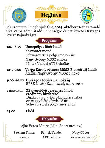2025. október 11. – Ajkai lövész verseny meghívó